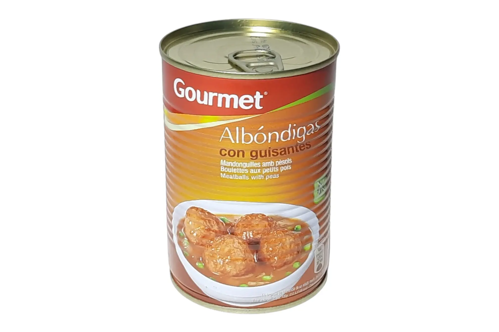 Lata de 420 g de Albóndigas en Salsa Gourmet. Una receta elaborada con ingredientes seleccionados y una salsa rica y melosa, diseñada para ofrecer un sabor más sofisticado y una textura tierna. Es un plato preparado de alta calidad, listo para calentar y disfrutar de una experiencia gastronómica rápida pero cuidada.