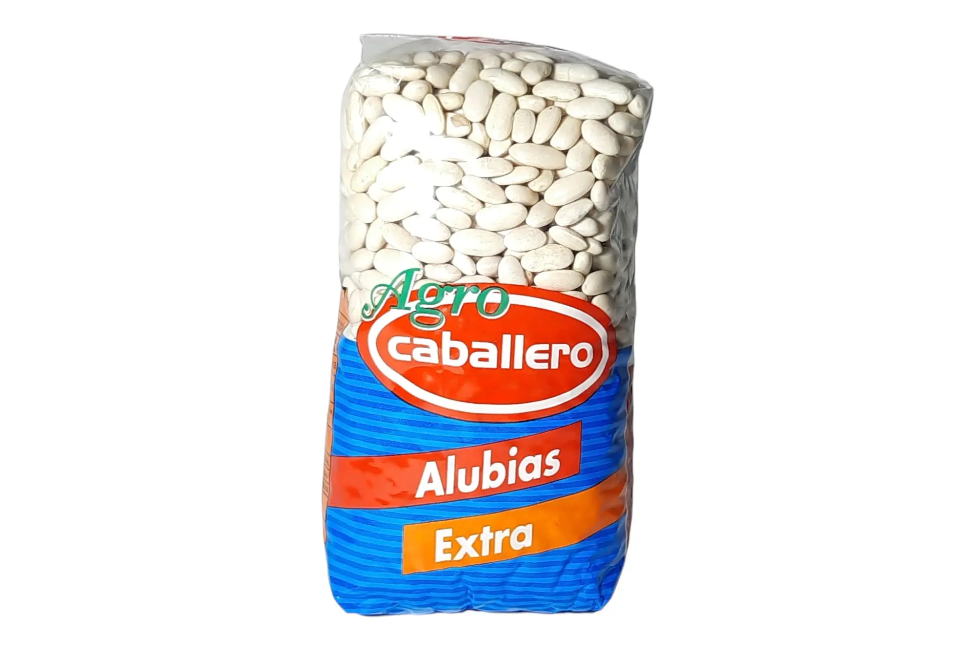 Alubias Caballero: Una variedad de legumbre de grano blanco, redondo y mantecoso, que destaca por su piel fina y su capacidad para absorber los sabores del guiso sin deshacerse.
