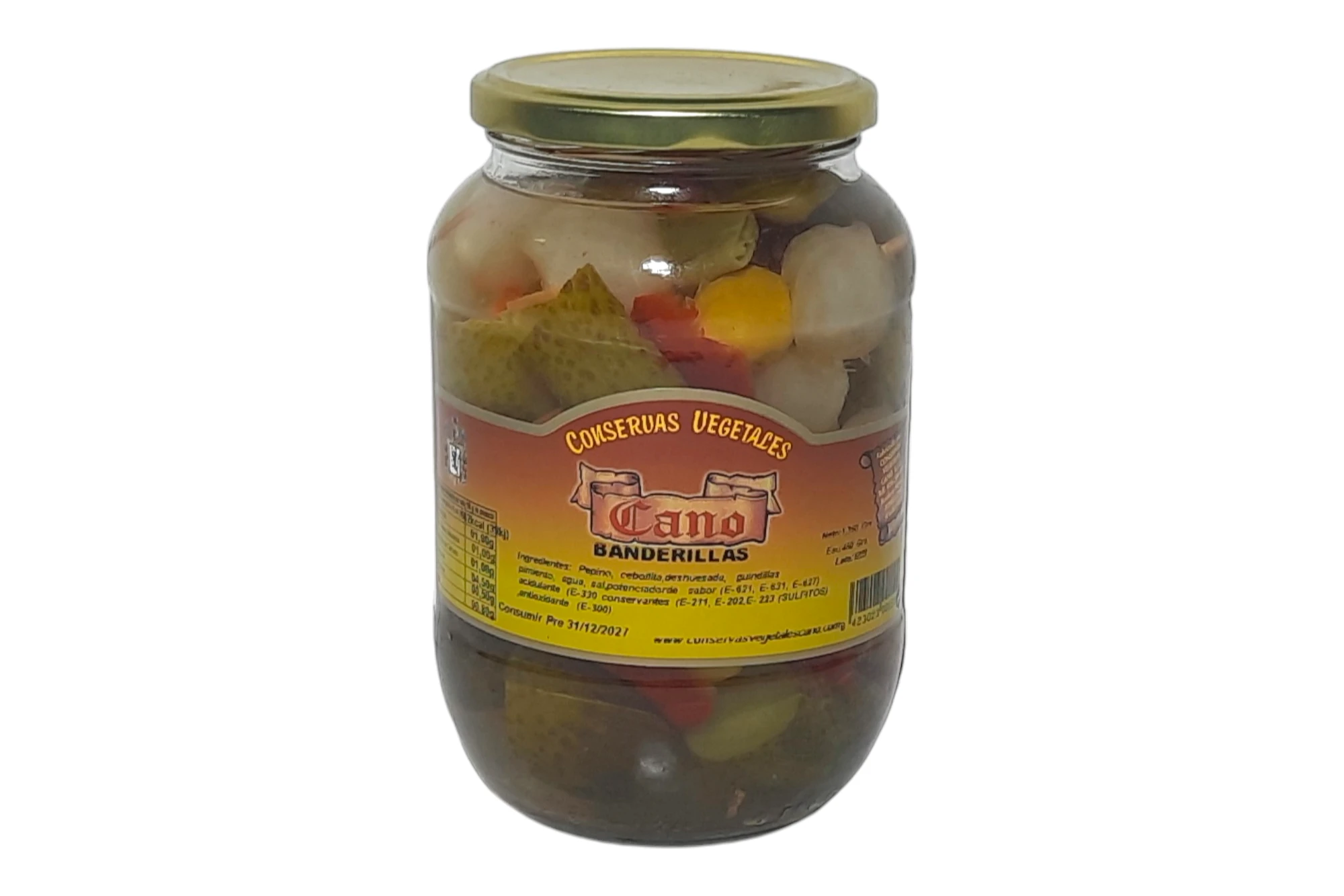 Banderillas Cano: Encurtido picante o dulce en brocheta que combina aceitunas, pepinillos, cebollitas y guindillas. Muy crujientes.
