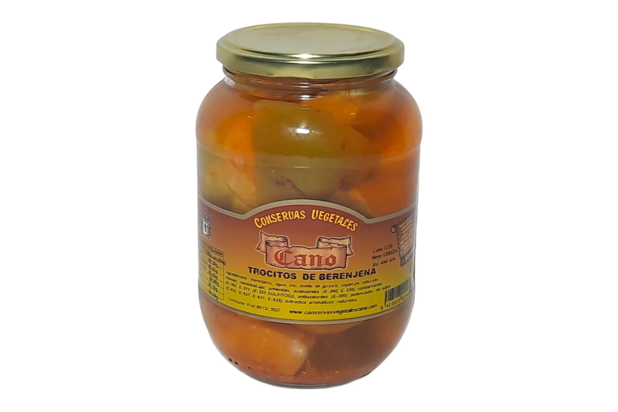 Berenjenas en trozos Cano: Berenjenas troceadas y aliñadas al estilo tradicional. Listas para consumir como aperitivo o guarnición.