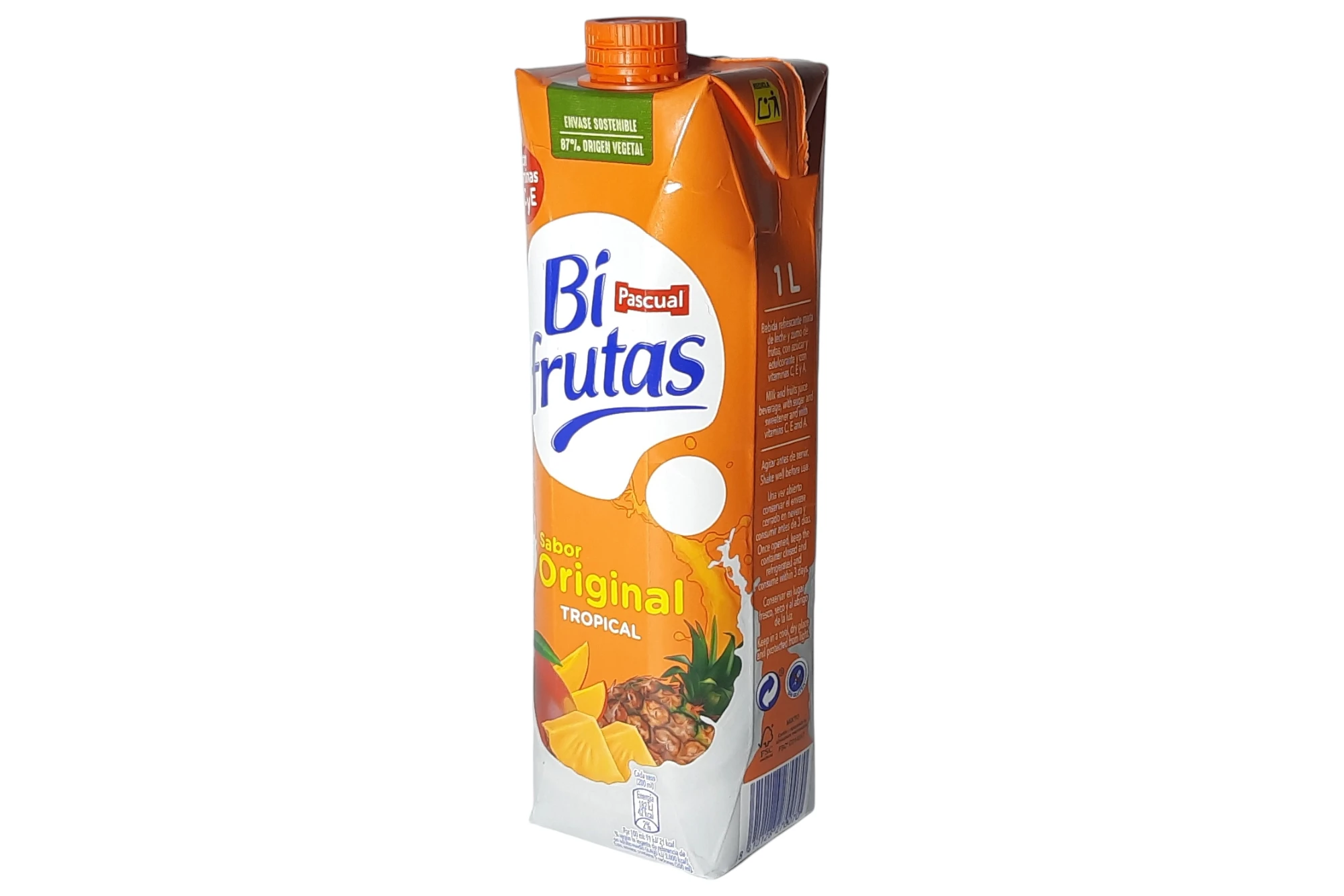 El Bifrutas Tropical de Pascual en su formato individual de 1 litro es la opción pensada para el consumo en el hogar, ideal para tener en la nevera y servir en vaso, a diferencia de los formatos pequeños con pajita.