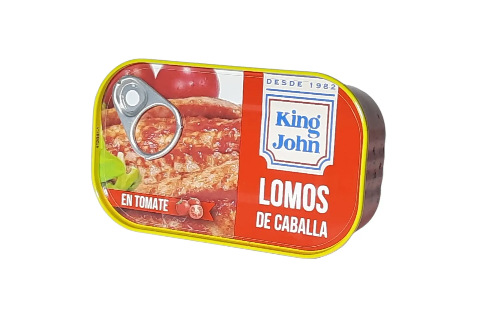 Lomos de caballa en tomate: Filetes de caballa limpios, sin piel ni espinas, conservados en una salsa de tomate suave. Combinan el sabor intenso del pescado azul con el toque dulce y jugoso del sofrito