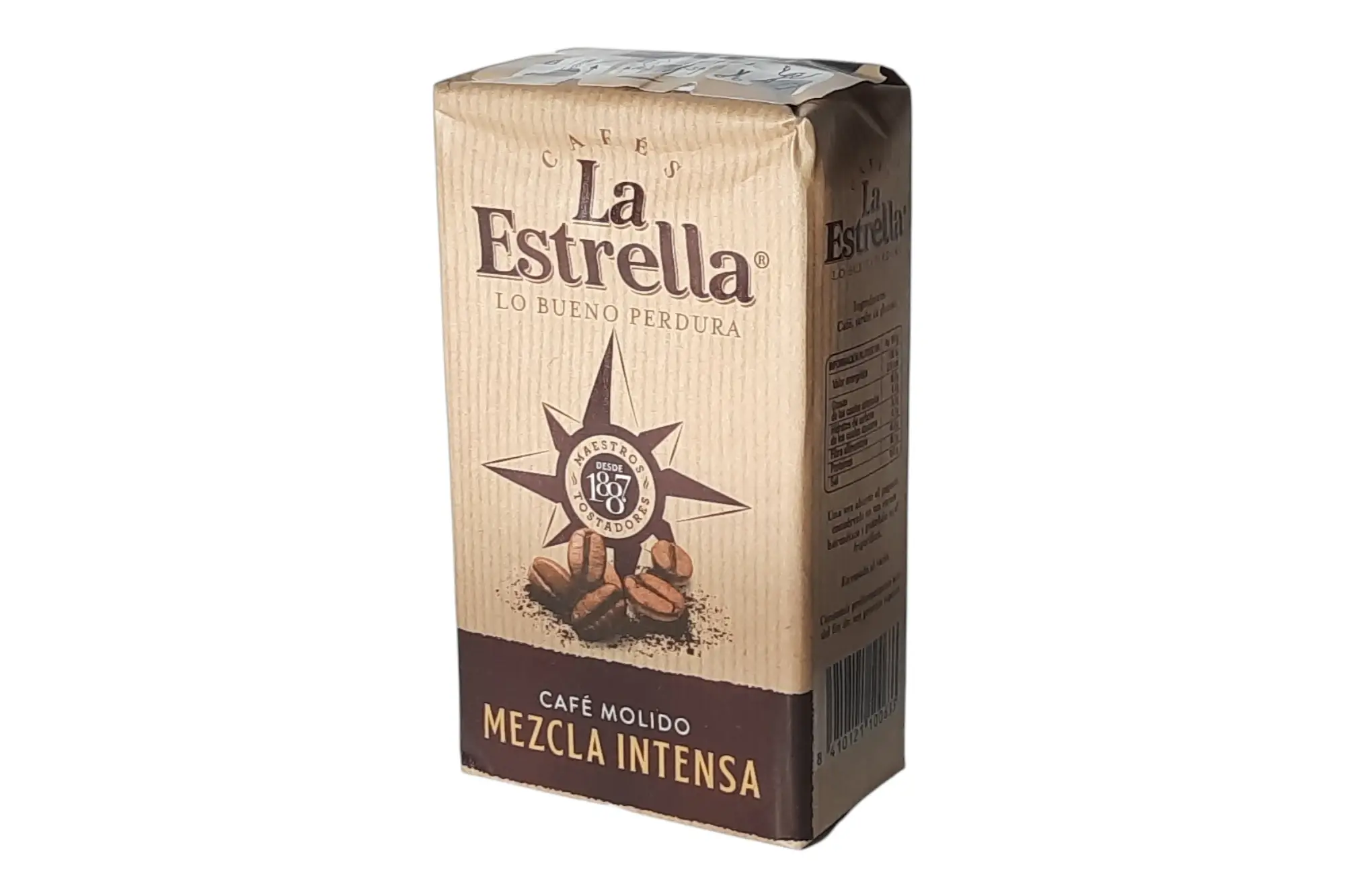 Paquete de 250 g de café La Estrella. Café molido de tueste natural con el aroma y sabor tradicional de la marca, ideal para preparar en cafetera italiana o de goteo.
