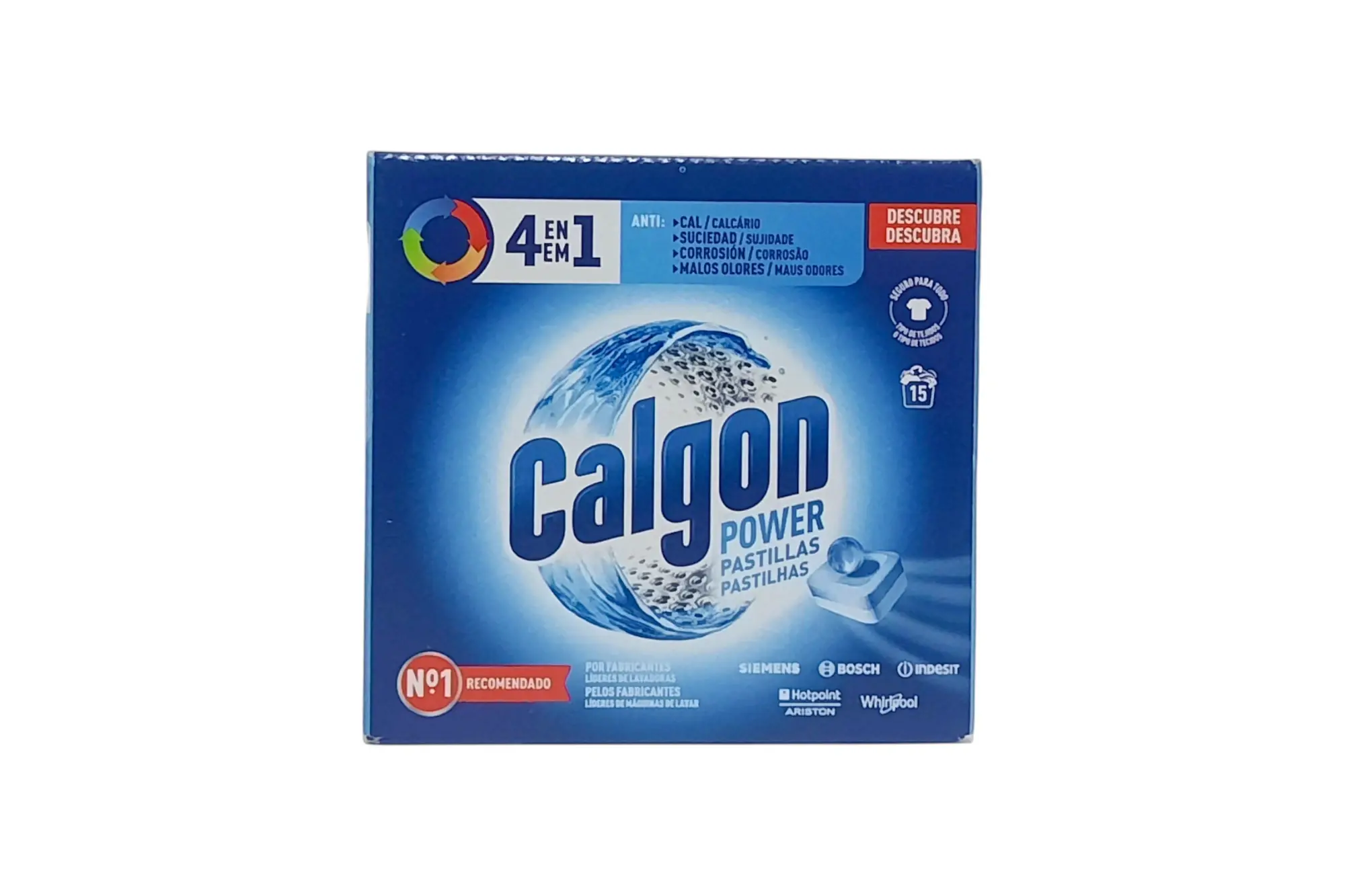 Envase de Calgon antical en formato de 15 pastillas. Este producto ayuda a proteger tu lavadora contra la cal y la suciedad, manteniendo las tuberías y el tambor limpios en cada lavado para prolongar la vida útil del electrodoméstico