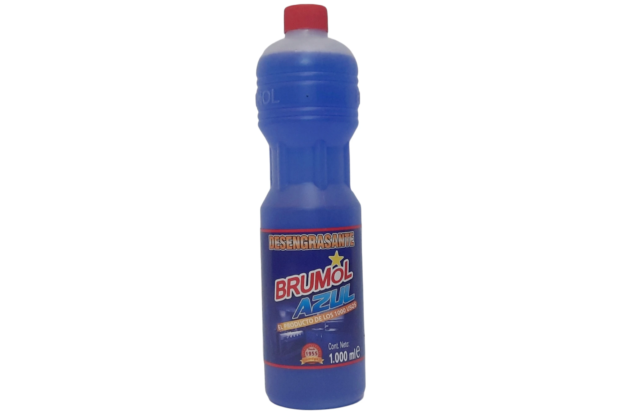 Botella de desengrasante Brumol de 1 litro. Potente limpiador multiusos de gran eficacia diseñado para eliminar la grasa acumulada y la suciedad más difícil en cocinas, azulejos y otras superficies del hogar, dejando un acabado impecable