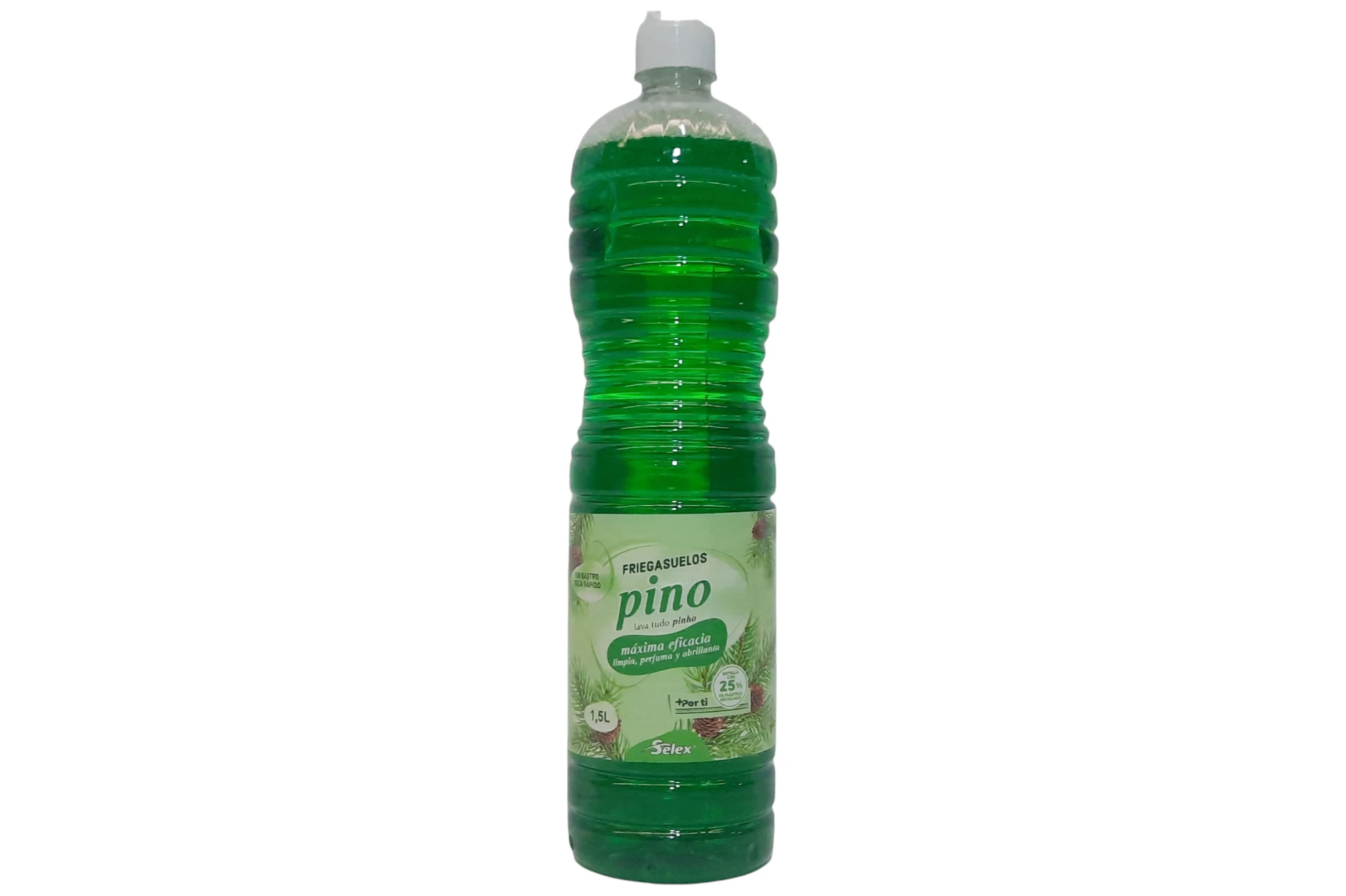 Limpiador de suelos en formato ahorro de 1,5 litros que ofrece una limpieza eficaz y un brillo duradero. Su fórmula está diseñada para todo tipo de superficies, dejando un aroma fresco y agradable en todo el hogar