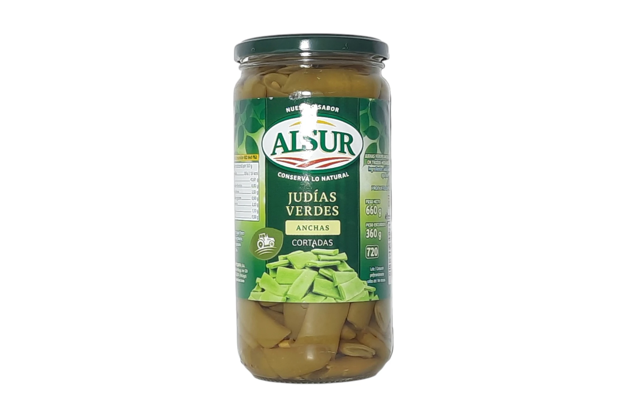 Judías verdes de variedad plana, seleccionadas, cortadas y cocidas al natural. Destacan por su textura tierna, su color intenso y su sabor auténtico, listas para escurrir y servir