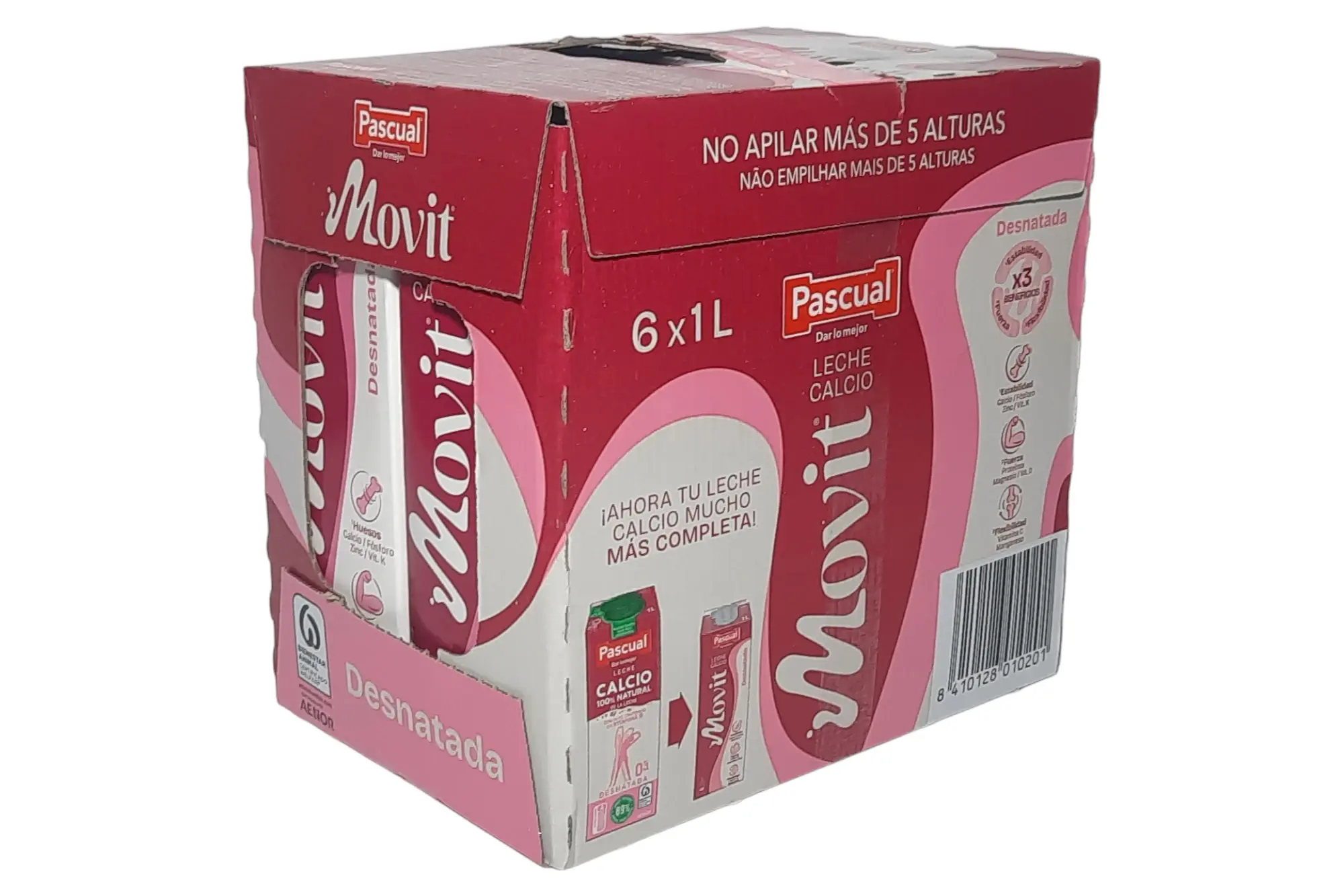 Leche Pascual (Movit) Calcio Desnatada brik 1 l caja 6 uds