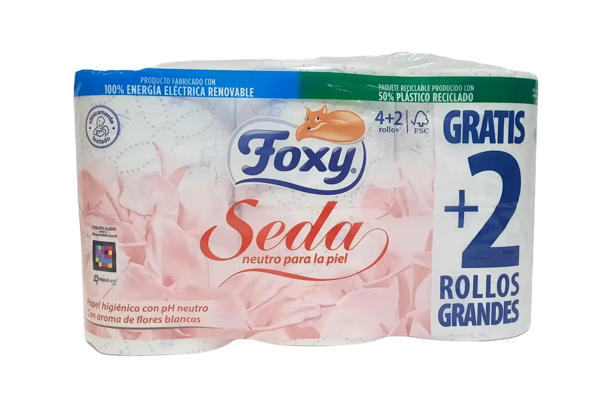 Papel higiénico Foxy Seda (6 rollos): Papel de alta gama con 3 capas de suavidad superior, enriquecido con fibras de seda para un tacto extra delicado y clínicamente testado para las pieles más exigentes
