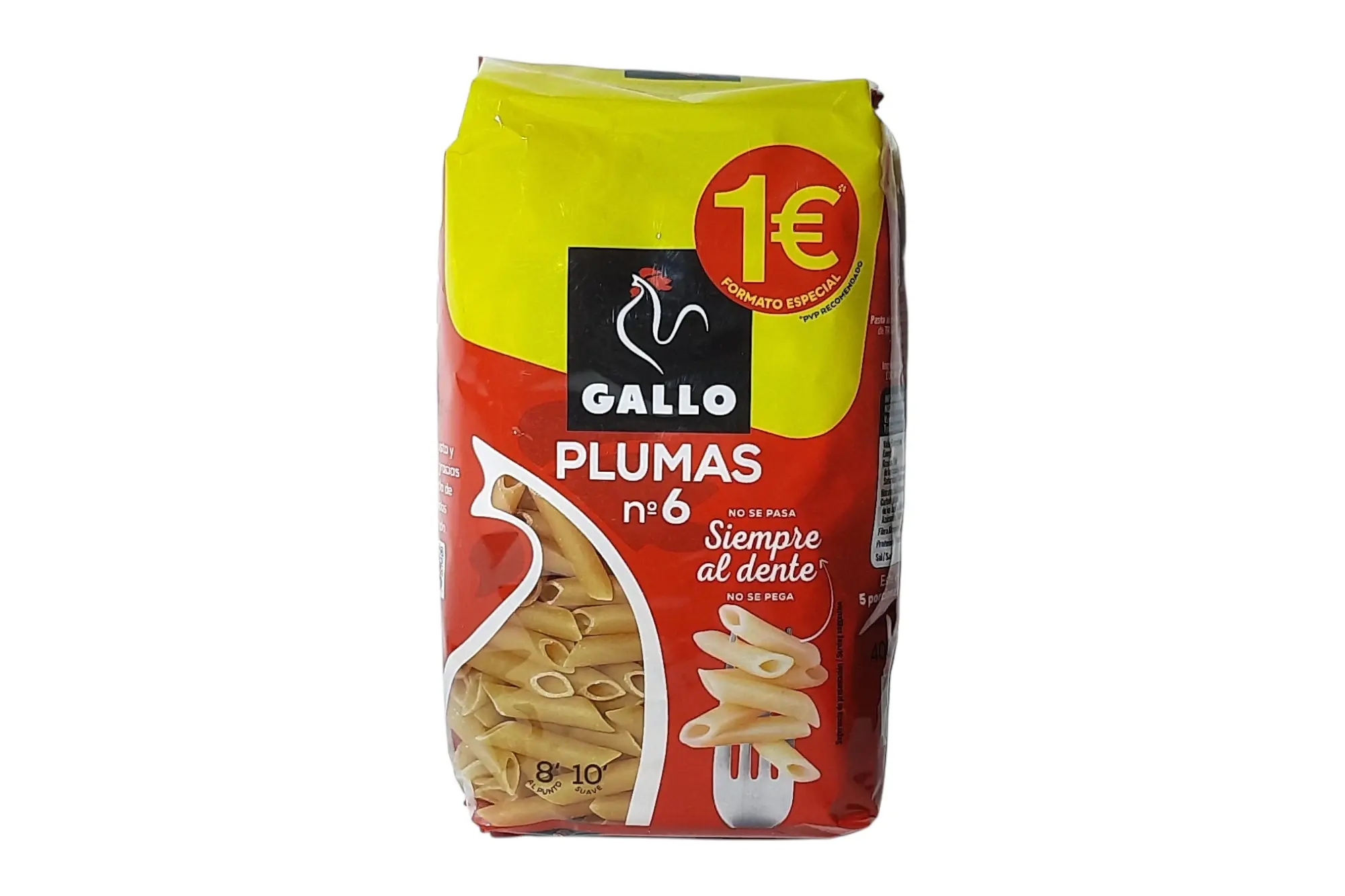 Paquete de 400 g de pasta Gallo pluma nº 6. Pasta de sémola de trigo duro de alta calidad con superficie estriada, ideal para retener salsas y acompañar todo tipo de guisos o ensaladas.