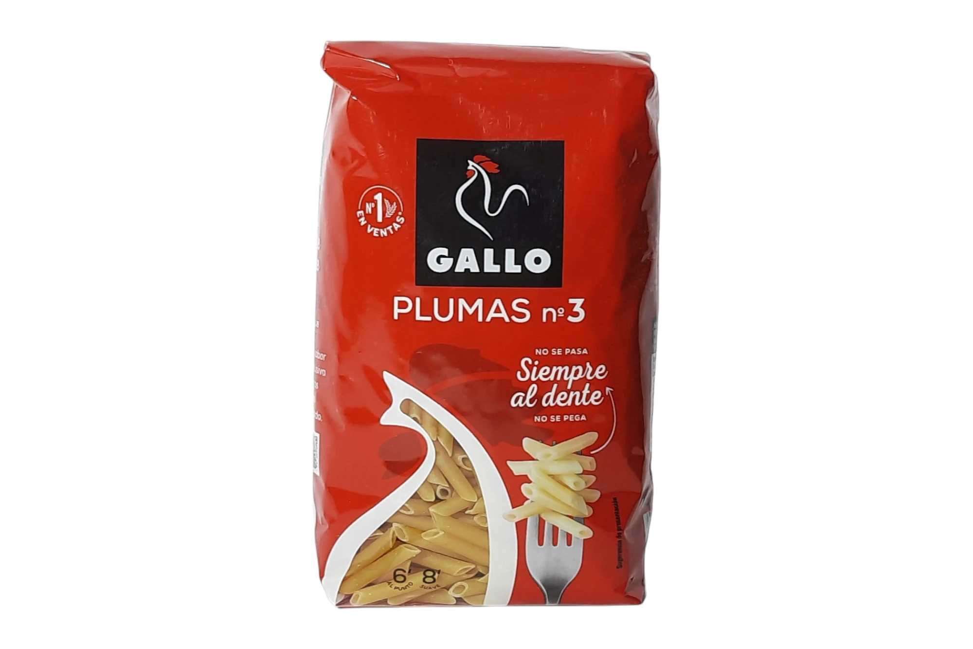 Paquete de 450 g de pasta Gallo pluma nº 3. Una pasta de sémola de trigo duro de calibre fino y superficie lisa, ideal para quienes prefieren una textura delicada en platos de pasta con salsas suaves o en ensaladas.
