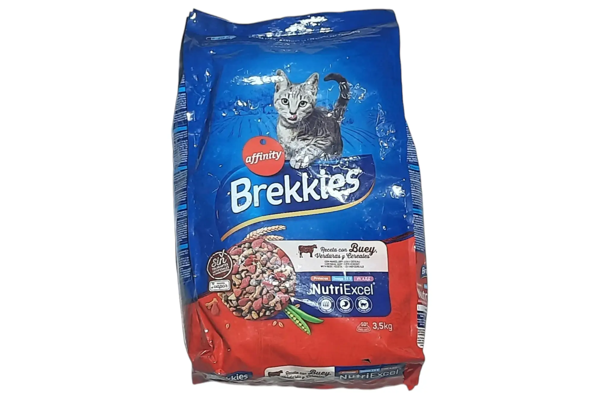 Pienso Brekkies Excel, disponible en variedades de salmón o buey. Es un alimento equilibrado que combina proteínas de calidad con verduras y cereales para favorecer la vitalidad y la salud digestiva de tu mascota.