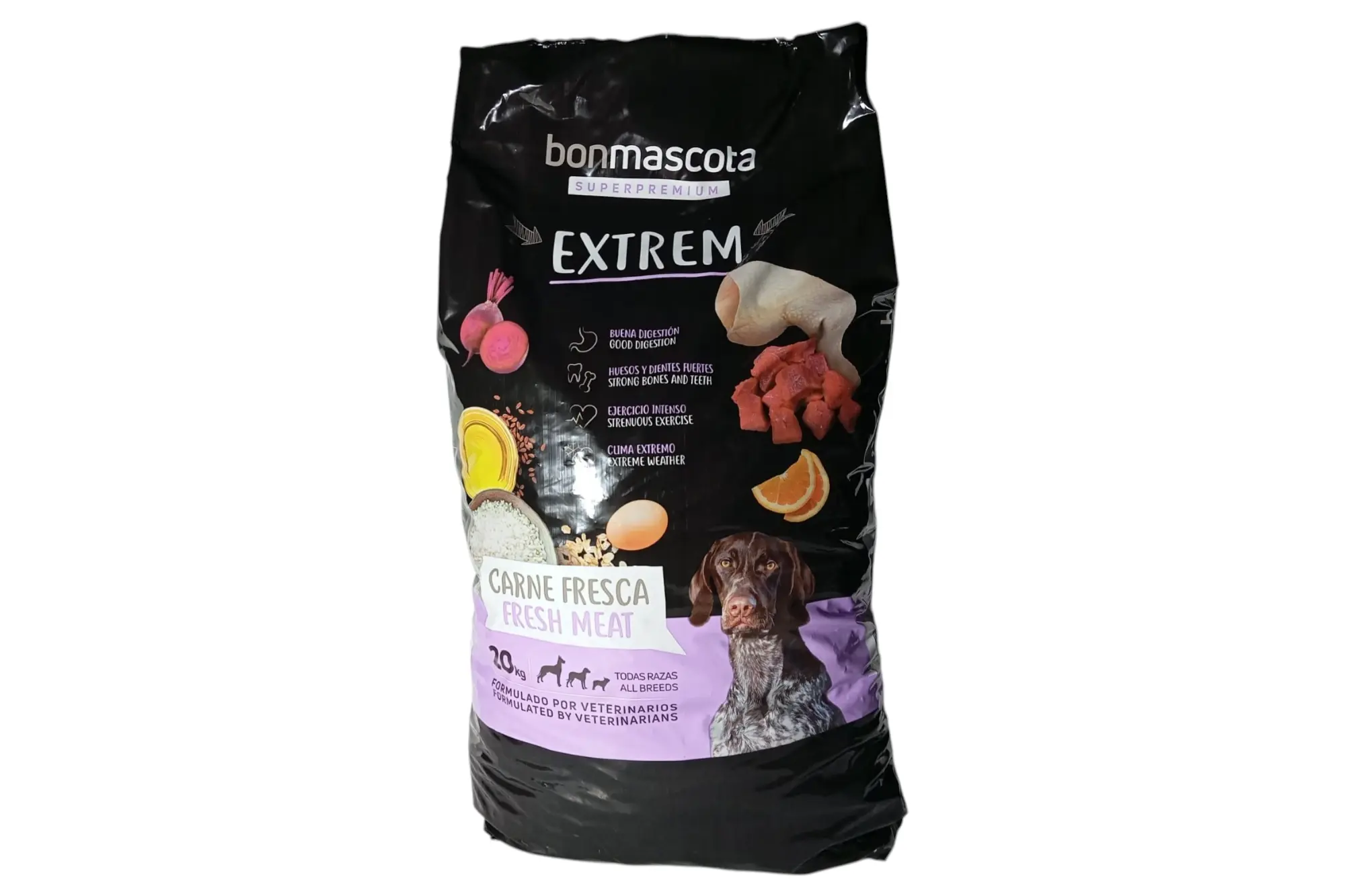 Saco de 20 kg de pienso bonArea Extrem. Una alimentación de alta gama, formulada con ingredientes seleccionados para ofrecer una nutrición óptima, completa y equilibrada para perros con un nivel de actividad normal.