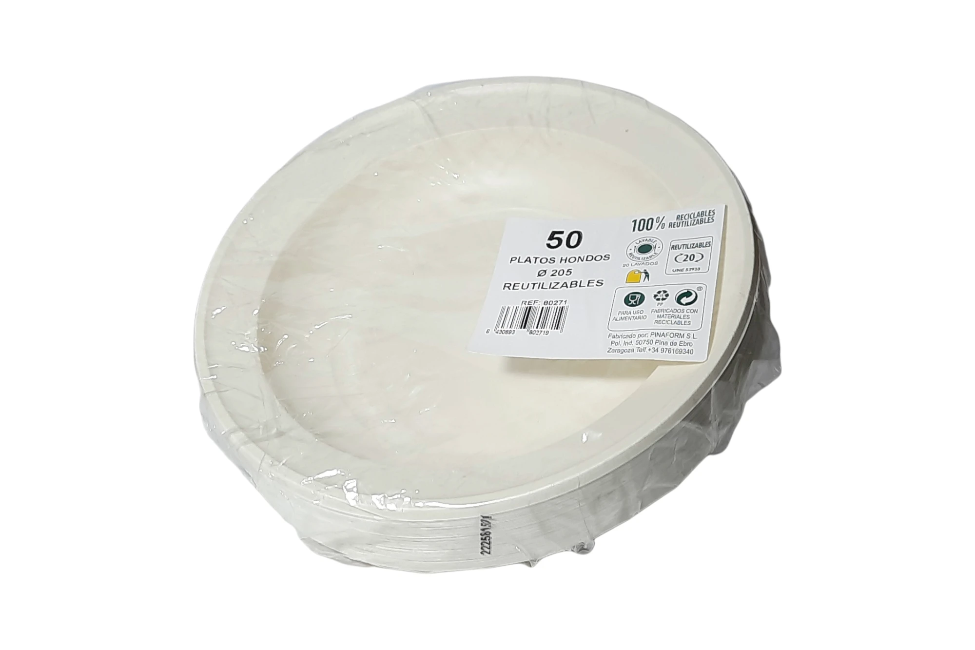 Platos de gran rigidez y resistencia, diseñados para soportar múltiples usos y lavados. Su profundidad los hace ideales para cremas, potajes o pastas en eventos que buscan una opción más sostenible y duradera que el de un solo uso.