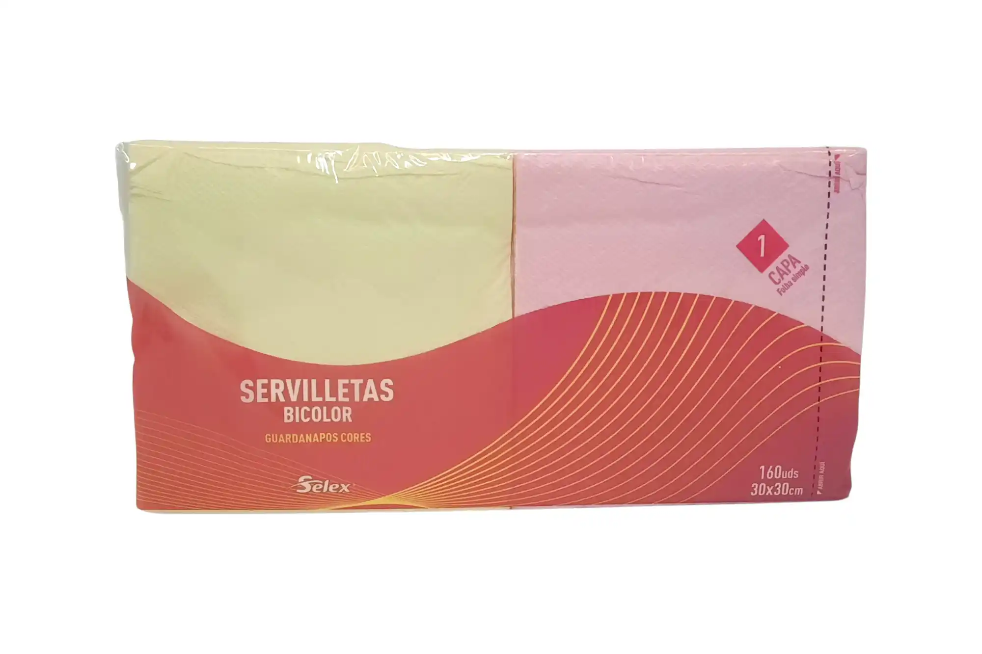 Paquete de 160 unidades de servilletas de papel bicolor. Presentan un diseño decorativo en dos tonos que aporta un toque moderno y colorido a la mesa, manteniendo una textura suave y resistente para el uso diario.