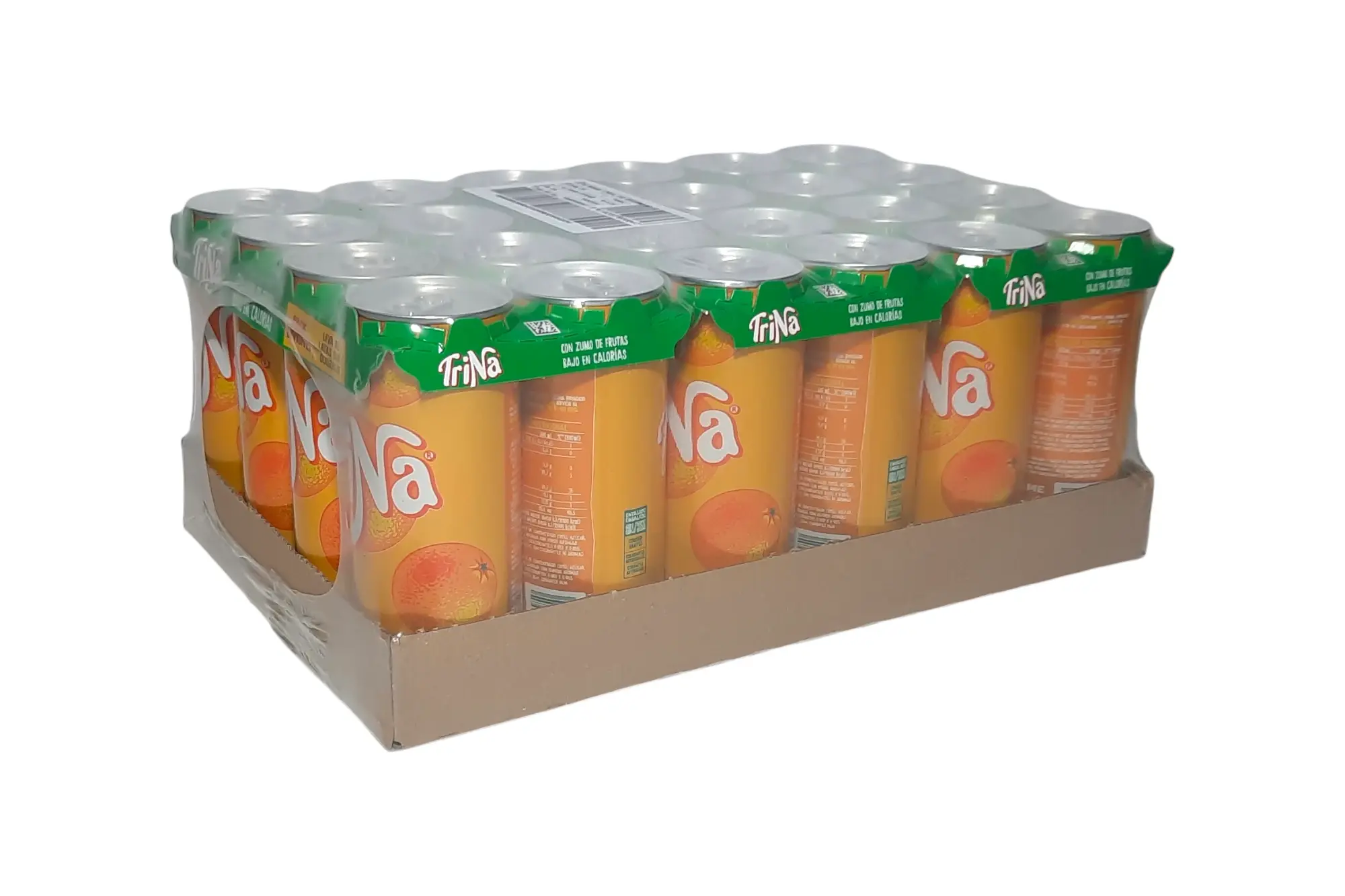 Trina Naranja (33cl): La versión individual en lata del refresco de naranja sin gas. Con su sabor frutal dulce y equilibrado, es la opción perfecta para quienes buscan una bebida refrescante de naranja con zumo natural y libre de burbujas