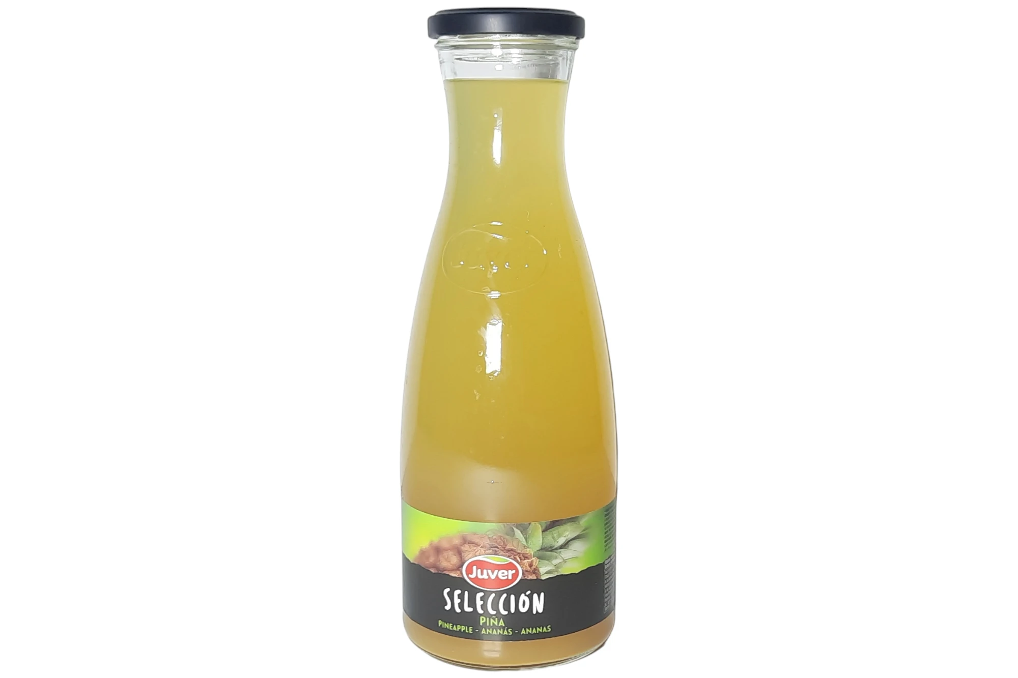 Zumo Juver Selección (850ml Cristal) Es la gama premium de Juver, presentada en una botella de vidrio que conserva mejor el sabor y la frescura. Está elaborado con una selección de las mejores frutas para ofrecer un sabor más intenso y natural, similar al zumo recién exprimido. Es una opción más sofisticada que los briks tradicionales, ideal para quienes valoran la calidad del envase y la pureza del producto.